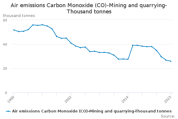 Download this time seriesAir emissions Carbon Monoxide (CO)-Mining and quarrying-Thousand tonnes