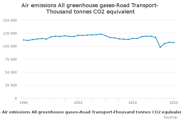 Download this time seriesAir emissions All greenhouse gases-Road Transport-Thousand tonnes CO2 equivalent