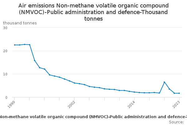 Download this time seriesAir emissions Non-methane volatile organic compound (NMVOC)-Public administration and defence-Thousand tonnes