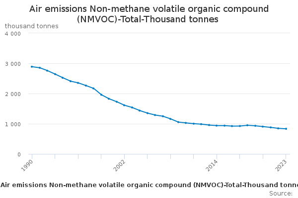 Download this time seriesAir emissions Non-methane volatile organic compound (NMVOC)-Total-Thousand tonnes