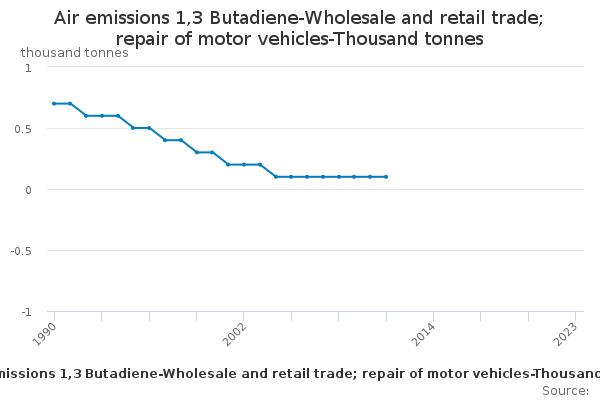 Download this time seriesAir emissions 1,3 Butadiene-Wholesale and retail trade; repair of motor vehicles-Thousand tonnes