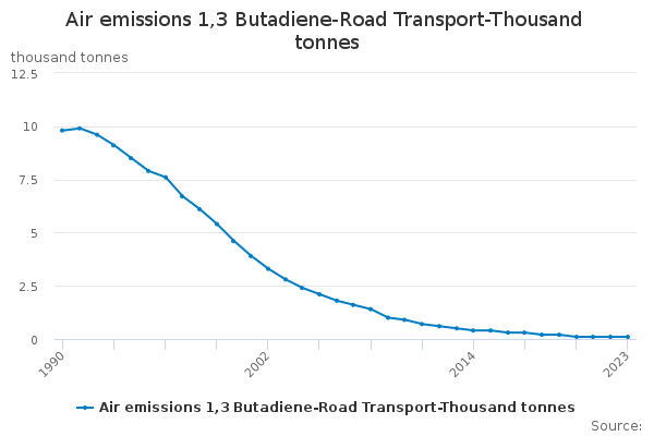 Download this time seriesAir emissions 1,3 Butadiene-Road Transport-Thousand tonnes