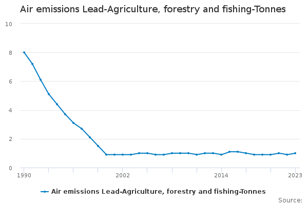 Download this time seriesAir emissions Lead-Agriculture, forestry and fishing-Tonnes