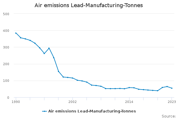 Download this time seriesAir emissions Lead-Manufacturing-Tonnes