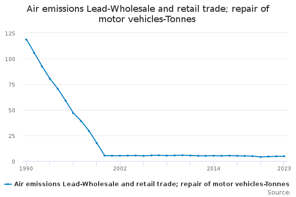 Download this time seriesAir emissions Lead-Wholesale and retail trade; repair of motor vehicles-Tonnes