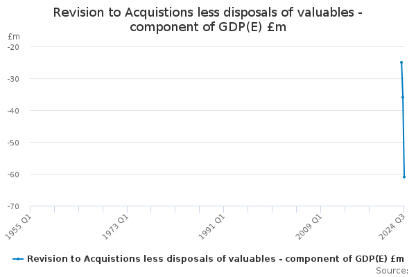 Download this time seriesRevision to Acquistions less disposals of valuables - component of GDP(E) £m