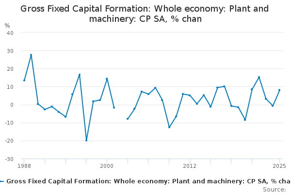 Download this time seriesGross Fixed Capital Formation: Whole economy: Plant and machinery: CP SA, % chan