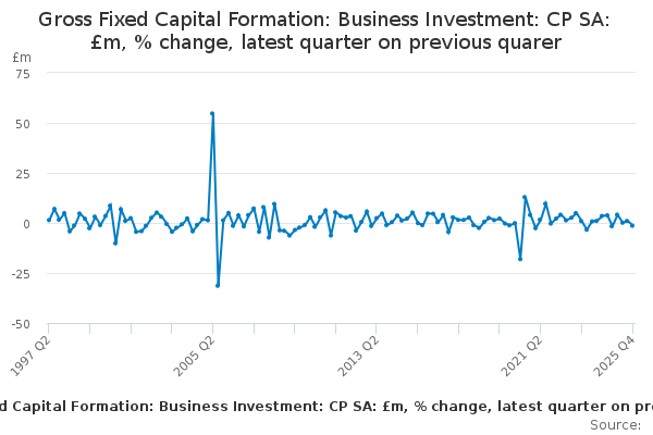 Download this time seriesGross Fixed Capital Formation: Business Investment: CP SA: £m, % change, latest quarter on previous quarer