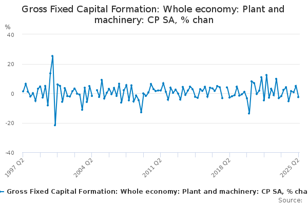 Download this time seriesGross Fixed Capital Formation: Whole economy: Plant and machinery: CP SA, % chan