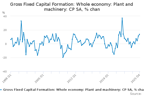 Download this time seriesGross Fixed Capital Formation: Whole economy: Plant and machinery: CP SA, % chan
