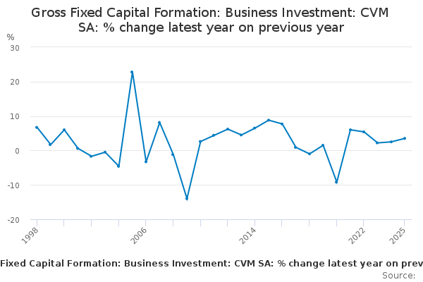 Download this time seriesGross Fixed Capital Formation: Business Investment: CVM SA: % change latest year on previous year
