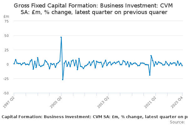 Download this time seriesGross Fixed Capital Formation: Business Investment: CVM SA: £m, % change, latest quarter on previous quarer