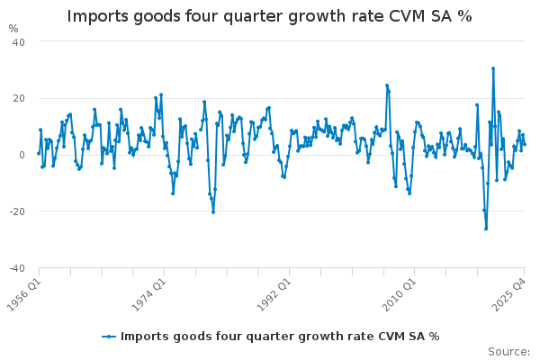 Download this time seriesImports goods four quarter growth rate CVM SA %
