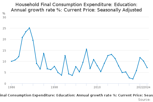 Download this time seriesHousehold Final Consumption Expenditure: Education: Annual growth rate %: Current Price: Seasonally Adjusted