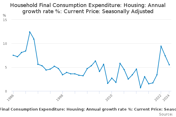Download this time seriesHousehold Final Consumption Expenditure: Housing: Annual growth rate %: Current Price: Seasonally Adjusted