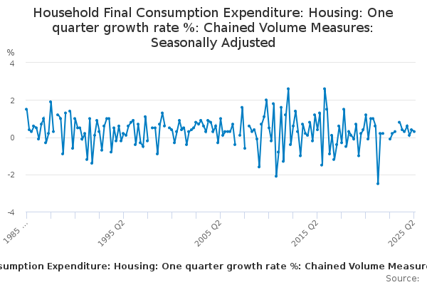 Download this time seriesHousehold Final Consumption Expenditure: Housing: One quarter growth rate %: Chained Volume Measures: Seasonally Adjusted