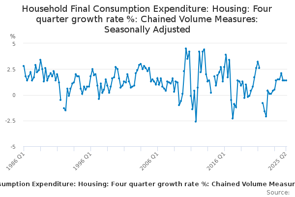 Download this time seriesHousehold Final Consumption Expenditure: Housing: Four quarter growth rate %: Chained Volume Measures: Seasonally Adjusted