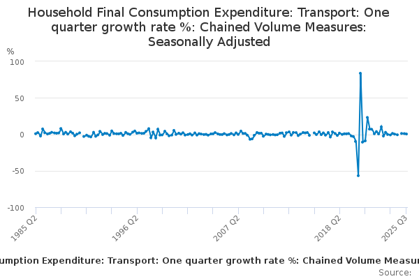 Download this time seriesHousehold Final Consumption Expenditure: Transport: One quarter growth rate %: Chained Volume Measures: Seasonally Adjusted