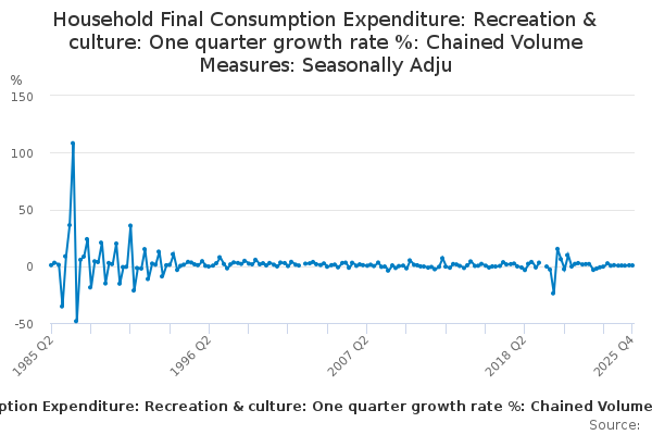 Download this time seriesHousehold Final Consumption Expenditure: Recreation & culture: One quarter growth rate %: Chained Volume Measures: Seasonally Adju