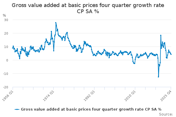 Download this time seriesGross value added at basic prices four quarter growth rate CP SA %
