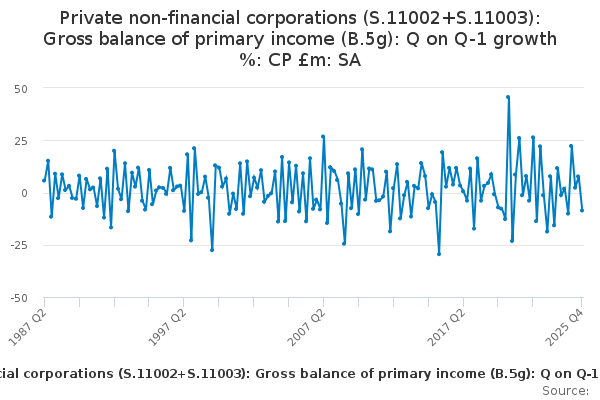 Download this time seriesPrivate non-financial corporations (S.11002+S.11003): Gross balance of primary income (B.5g): Q on Q-1 growth %: CP £m: SA