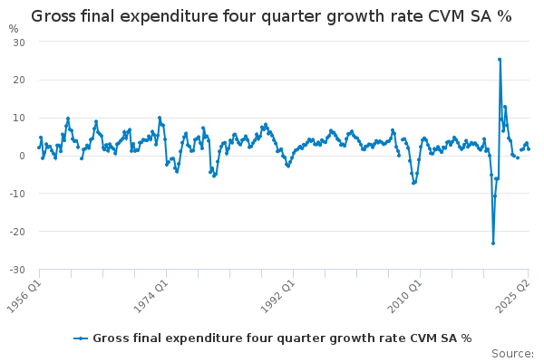 Download this time seriesGross final expenditure four quarter growth rate CVM SA %