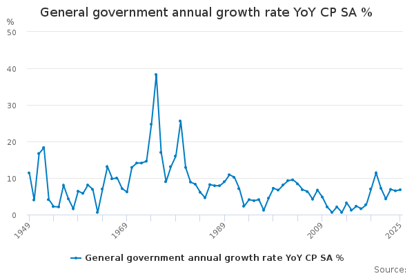 Download this time seriesGeneral government annual growth rate YoY CP SA %