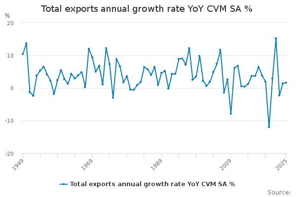 Download this time seriesTotal exports annual growth rate YoY CVM SA %