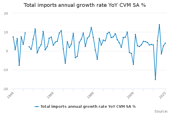 Download this time seriesTotal imports annual growth rate YoY CVM SA %