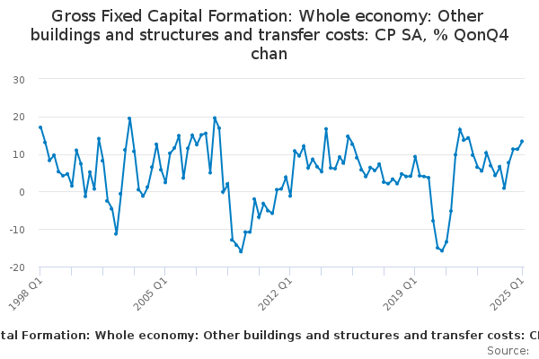 Download this time seriesGross Fixed Capital Formation: Whole economy: Other buildings and structures and transfer costs: CP SA, % QonQ4 chan