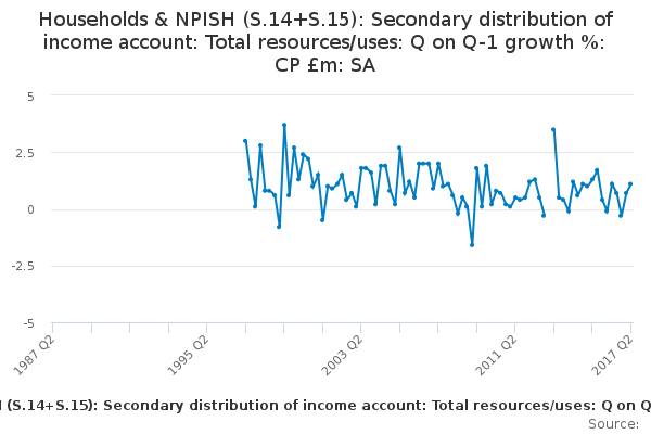 Download this time seriesHouseholds & NPISH (S.14+S.15): Secondary distribution of income account: Total resources/uses: Q on Q-1 growth %: CP £m: SA