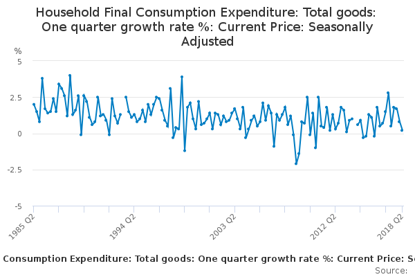 Download this time seriesHousehold Final Consumption Expenditure: Total goods: One quarter growth rate %: Current Price: Seasonally Adjusted