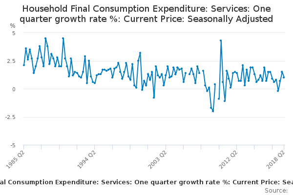 Download this time seriesHousehold Final Consumption Expenditure: Services: One quarter growth rate %: Current Price: Seasonally Adjusted