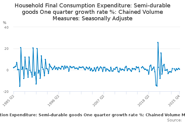 Download this time seriesHousehold Final Consumption Expenditure: Semi-durable goods One quarter growth rate %: Chained Volume Measures: Seasonally Adjuste