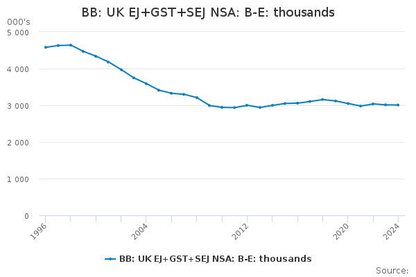 Download this time seriesBB: UK EJ+GST+SEJ NSA: B-E: thousands