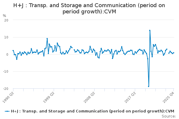 Download this time seriesH+J : Transp. and Storage and Communication (period on period growth):CVM