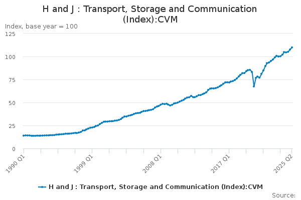Download this time seriesH and J : Transport, Storage and Communication (Index):CVM
