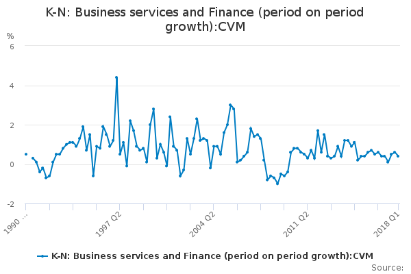 Download this time seriesK-N: Business services and Finance (period on period growth):CVM