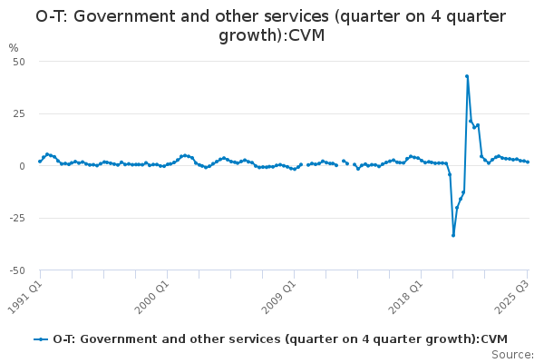 Download this time seriesO-T: Government and other services (quarter on 4 quarter growth):CVM