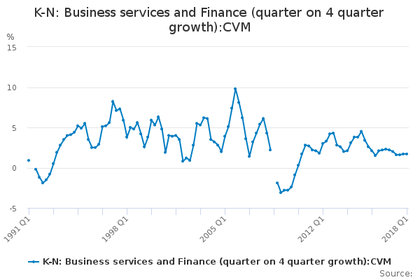 Download this time seriesK-N: Business services and Finance (quarter on 4 quarter growth):CVM