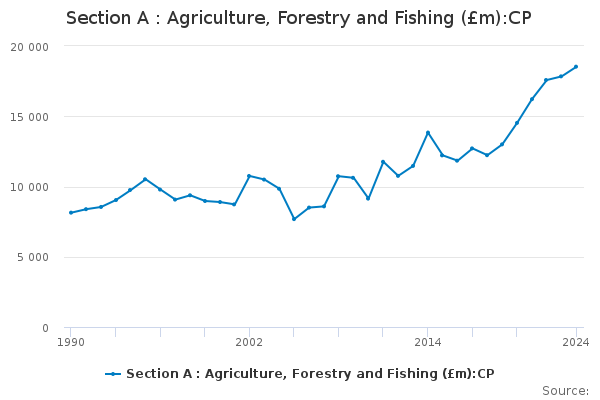 Download this time seriesSection A : Agriculture, Forestry and Fishing (£m):CP