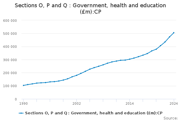 Download this time seriesSections O, P and Q : Government, health and education (£m):CP