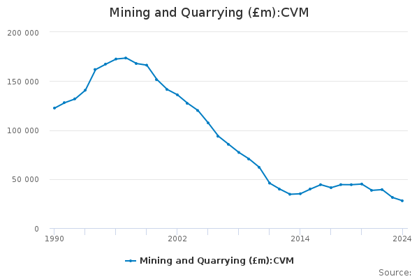 Download this time seriesMining and Quarrying (£m):CVM