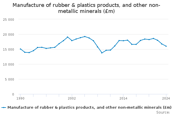 Download this time seriesManufacture of rubber & plastics products, and other non-metallic minerals (£m)