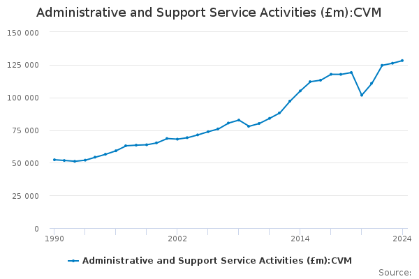 Download this time seriesAdministrative and Support Service Activities (£m):CVM