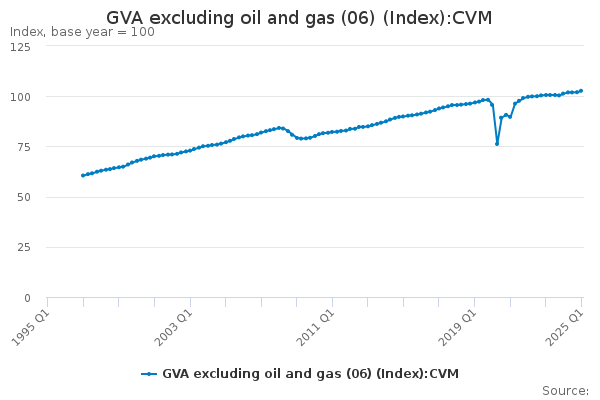 Download this time seriesGVA excluding oil and gas (06) (Index):CVM