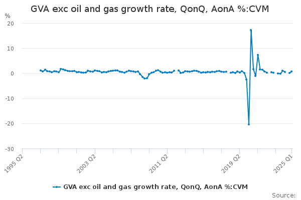 Download this time seriesGVA exc oil and gas growth rate, QonQ, AonA %:CVM