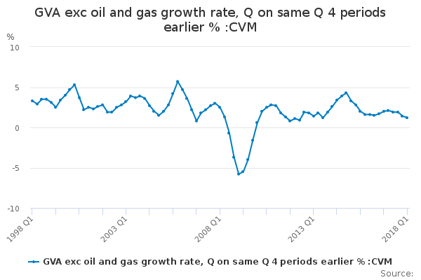 Download this time seriesGVA exc oil and gas growth rate, Q on same Q 4 periods earlier % :CVM