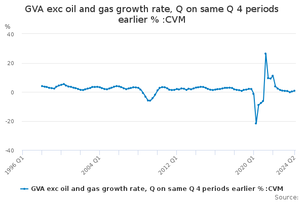 Download this time seriesGVA exc oil and gas growth rate, Q on same Q 4 periods earlier % :CVM