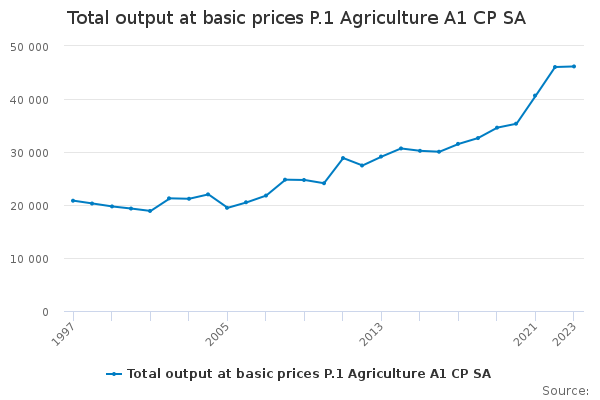 Download this time seriesTotal output at basic prices P.1 Agriculture A1 CP SA